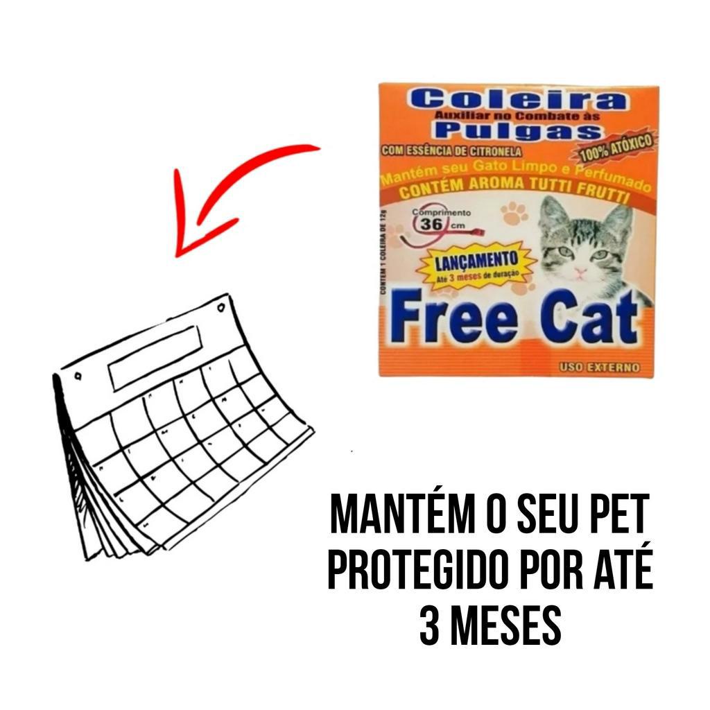A coleira para gatos pode ser usada a partir do 3° mês de vida. Somente abrir a embalagem da coleira no momento do uso para assim, potencializar o efeito. Colocar a coleira no pescoço do gato sem apertar demasiadamente. Havendo necessidade, cortar o excedente.